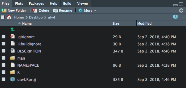 Lastly, if you plan on doing a little larger project a NEWS file is very handy to keep track of what is happening in your package.
