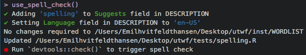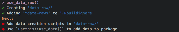 This is the end of this post, and there are many more functions in usethis that I haven’t covered here, both for development and otherwise. One set of functions I would like to highlight in particular is the Helpers for tidyverse development which helps you follow tidyverse conventions which are generally a little stricter than the defaults. If you have any questions or additions you would like to have added please don’t refrain from contacting me!