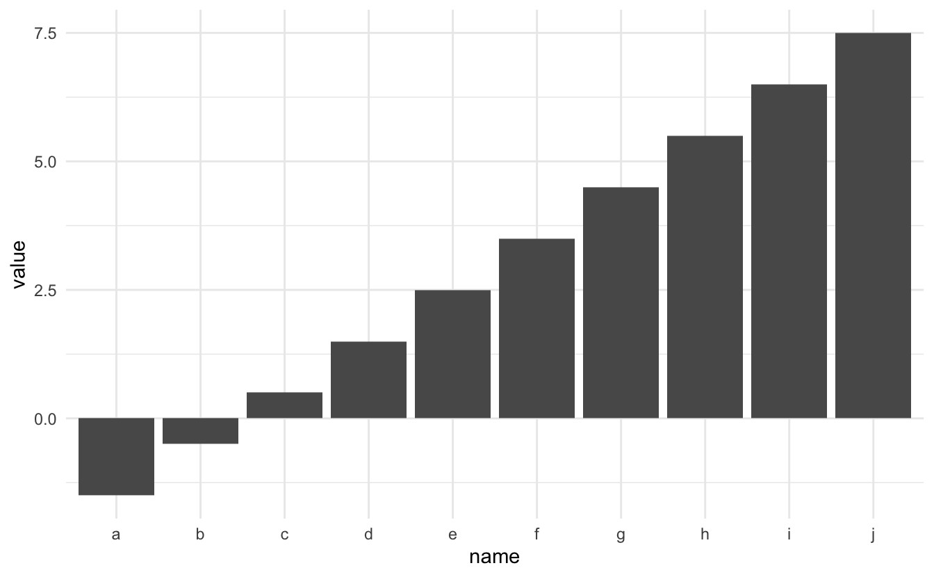 First, let’s construct a simple chart, we have a bar chart where some of the bars go up, and some of the bars go down.